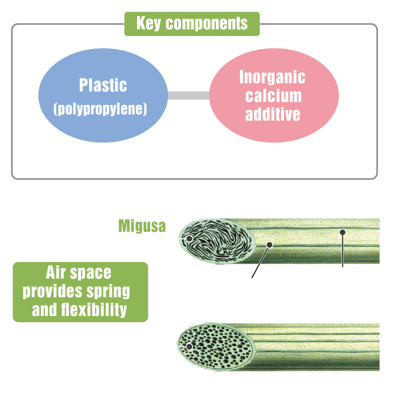 Sekisui MIGUSA tatami mats are made of a specially-developed resin that reproduces the same texture and skin sensation as the rushes used in Japan’s traditional tatami mats with the use of our high-grade resin formulation technology.